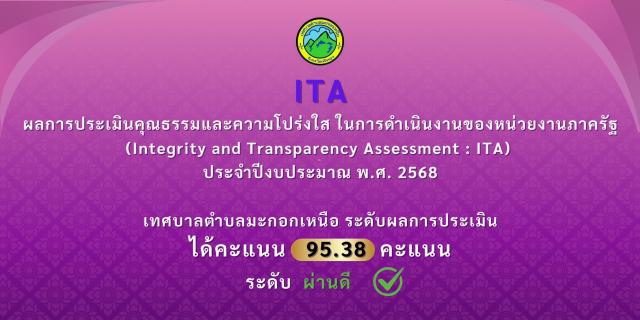 ผลการประเมินคุณธรรมและความโปร่งใส ในการดำเนินงานของหน่วยงานภาครัฐ (Integrity and Transparency Assessment : ITA) ประจำปีงบประมาณ พ.ศ. 2568 เทศบาลตำบลมะกอกเหนือ ระดับผลการประเมิน ผ่านดี คะแนน 95.38 (+4.89)