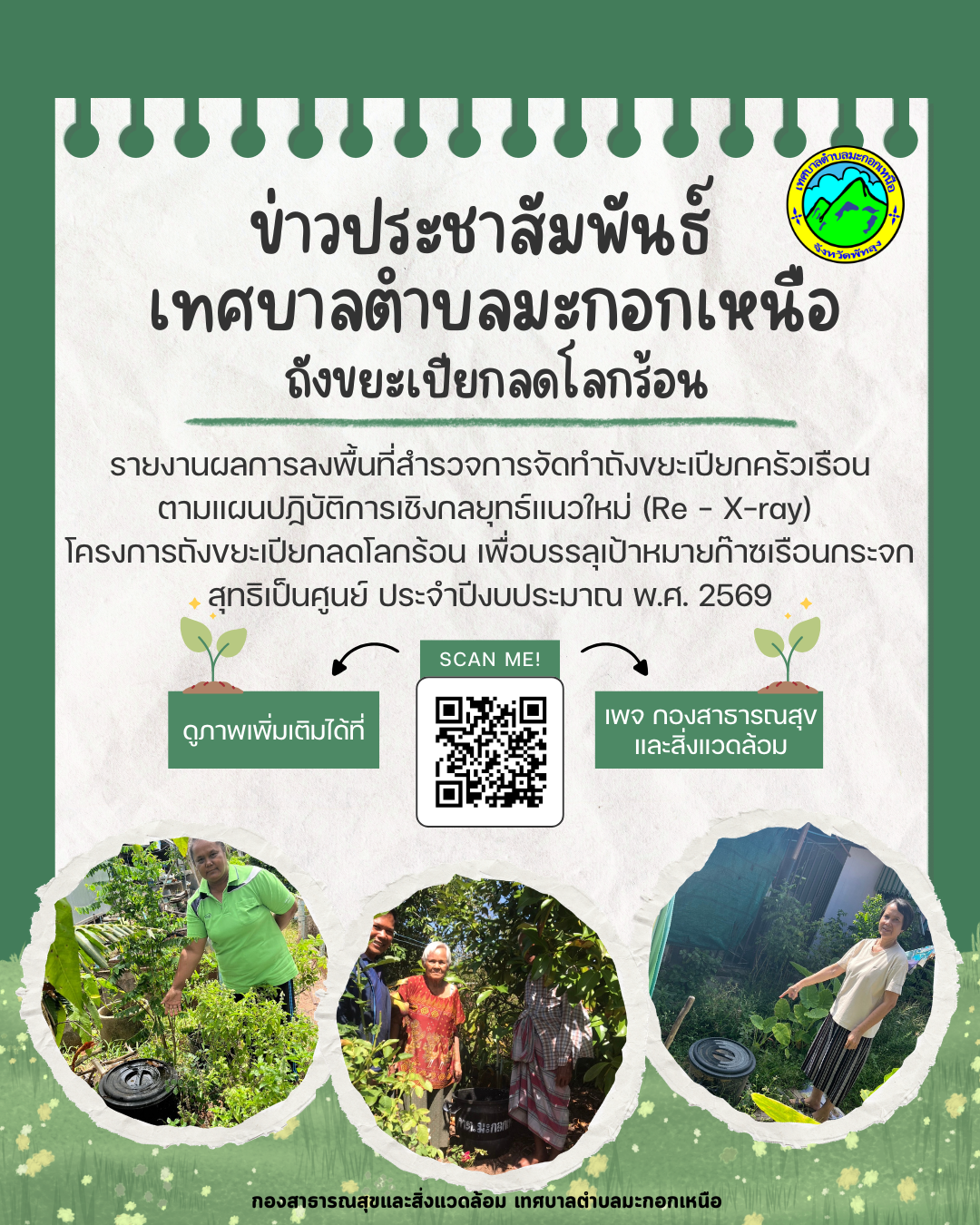 รายงานผลการลงพื้นที่สำรวจการจัดทำถังขยะเปียกครัวเรือน ตามแผนปฏิบัติการเชิงกลยุทธ์แนวใหม่ (Re - X-ray)