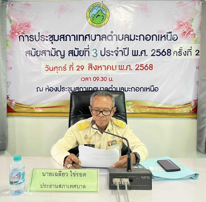 ภาพการประชุมสภาเทศบาลตำบลมะกอกเหนือ สมัยสามัญ สมัยที่ 3 ครั้งที่ 2 ประจำปี พ.ศ. 2568 วันศุกร์ ที่ 29 สิงหาคม พ.ศ. 2568 เวลา 09.30 น. ณ ห้องประชุมสภาเทศบาลตำบลมะกอกเหนือ